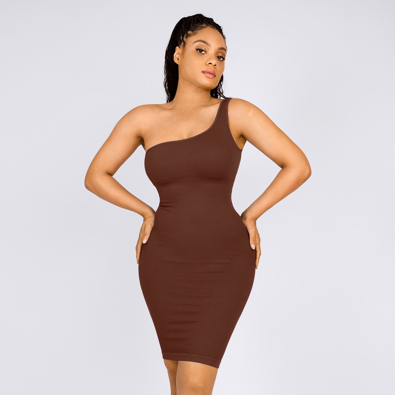 فستان لتشكيل الجسم عالي المرونة بكتف واحد :